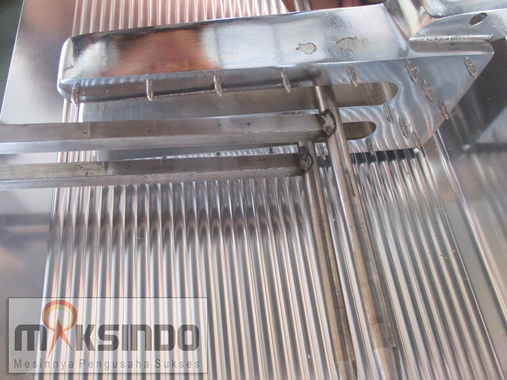 Mesin meat slicer Maksindo berfungsi untuk mengiris daging beku, keju dan bahan lainnya yang sejenis.