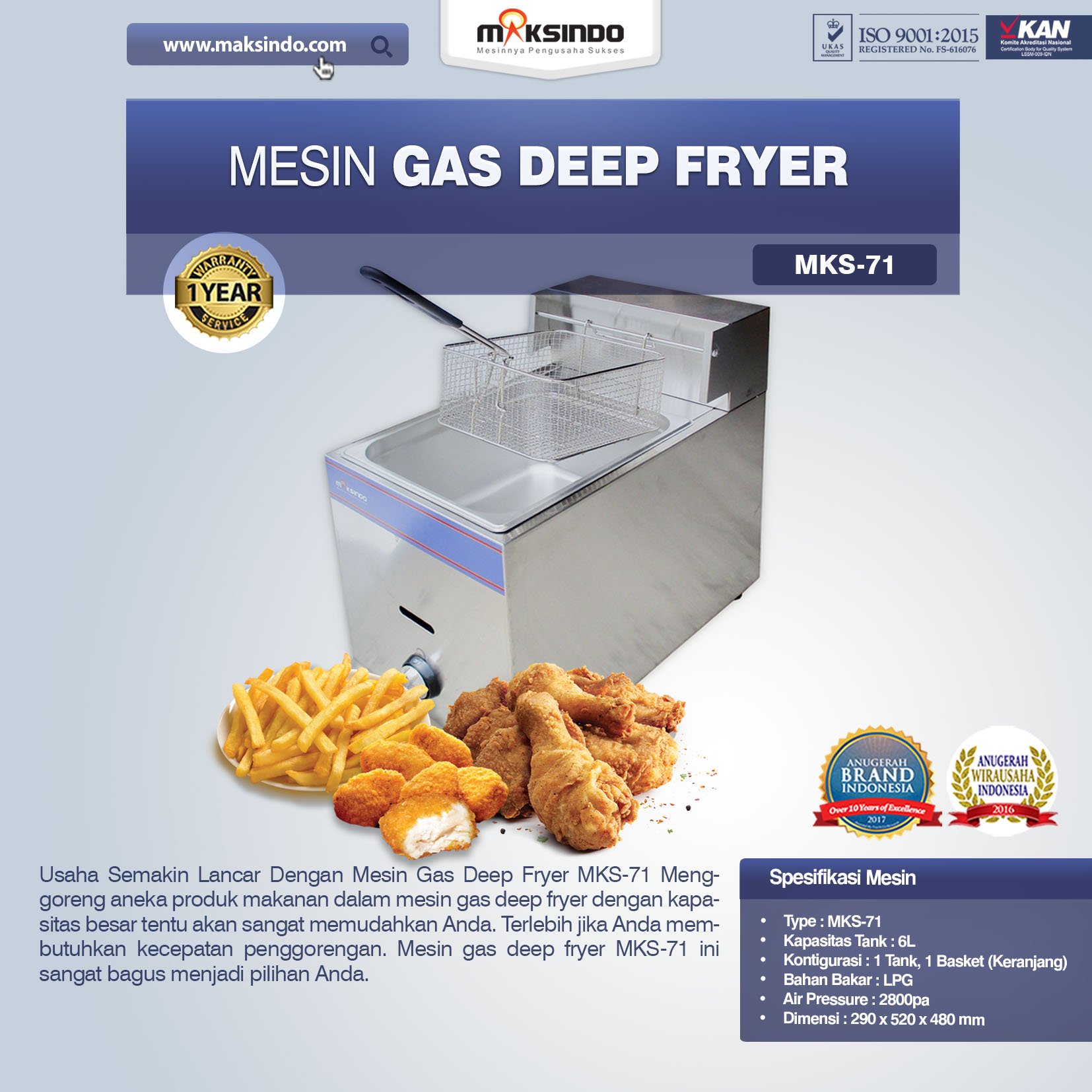 Jual Mesin Gas Deep Fryer MKS-71 di Bekasi