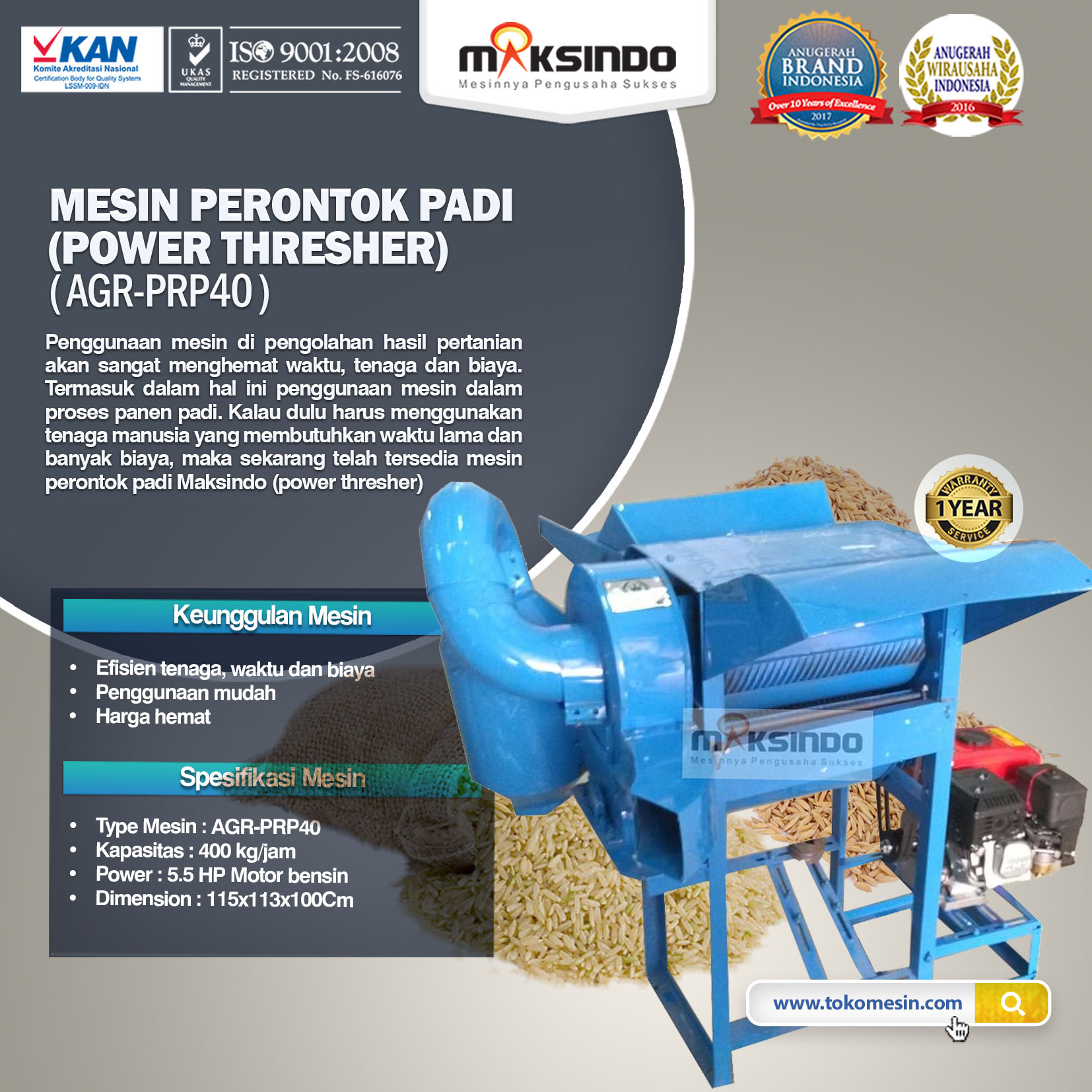 - Type Mesin : AGR-PRP40